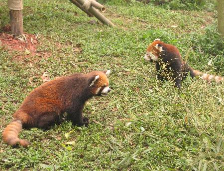 | The red pandas were quite a bit more lively (and racoon-like). |