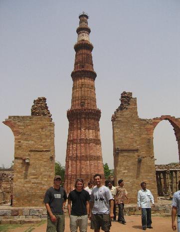 Below: The Quth Minar, which is the largest stone pillar in India. From left to right, we have Rob (from Canada) and Jean-Paul (from Luxembourg), two fun guys we met at our guesthouse. They are both wrapping up their respective one-year trips.
