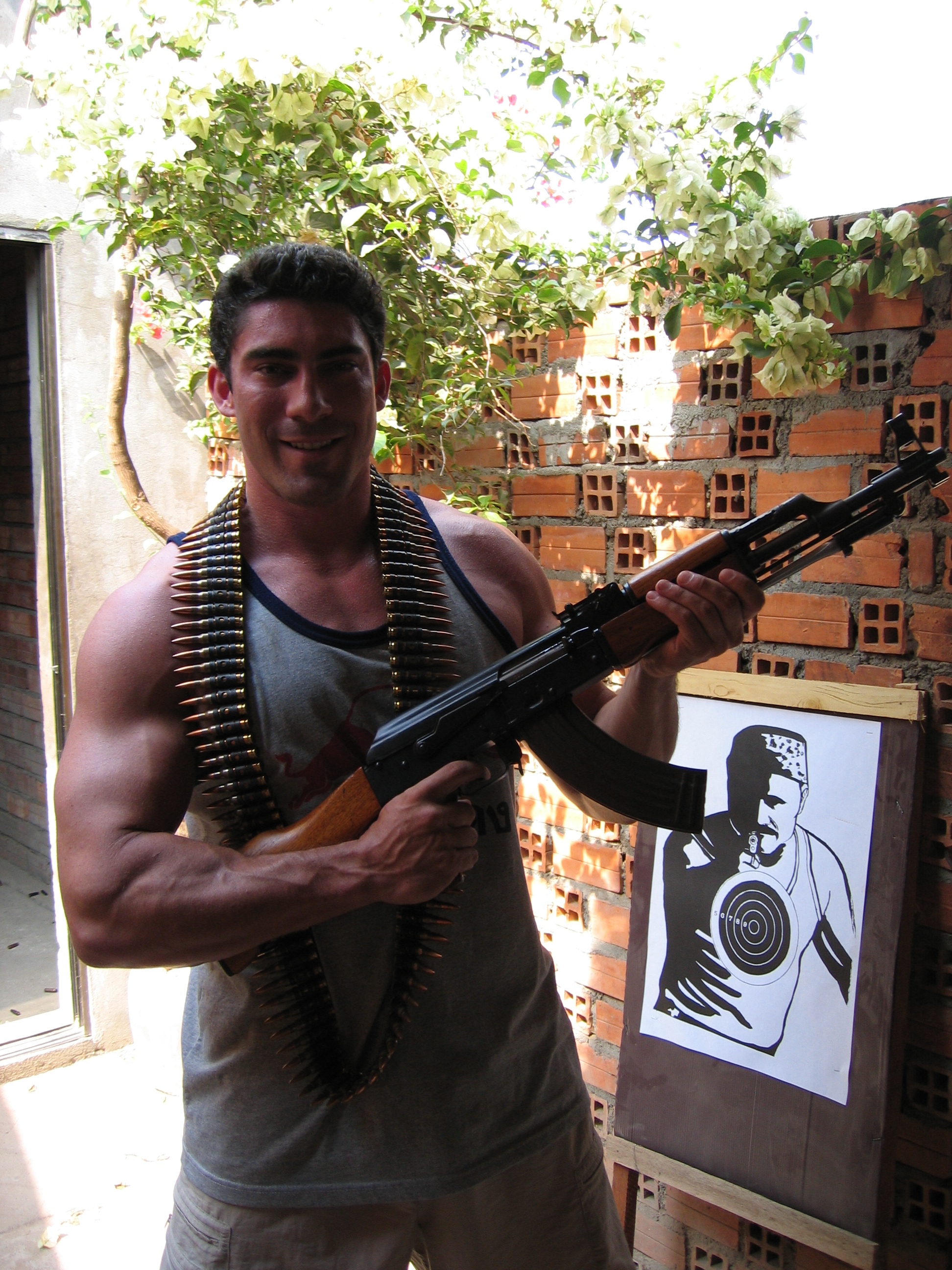 We went to the shooting range (on an old army training base) to fire off some pistols and AK-47s. Before we started, the guy running the range offered us chickens, claiming “moving target more fun.” He was probably right, but we declined. Shooting the pistol was fun, but was nothing compared to the AK-47. Just a little squeeze of the trigger unleashes so much destructive power, and even with the ear protection, it was deafening. I was actually somewhat relieved when my 30 rounds were up.