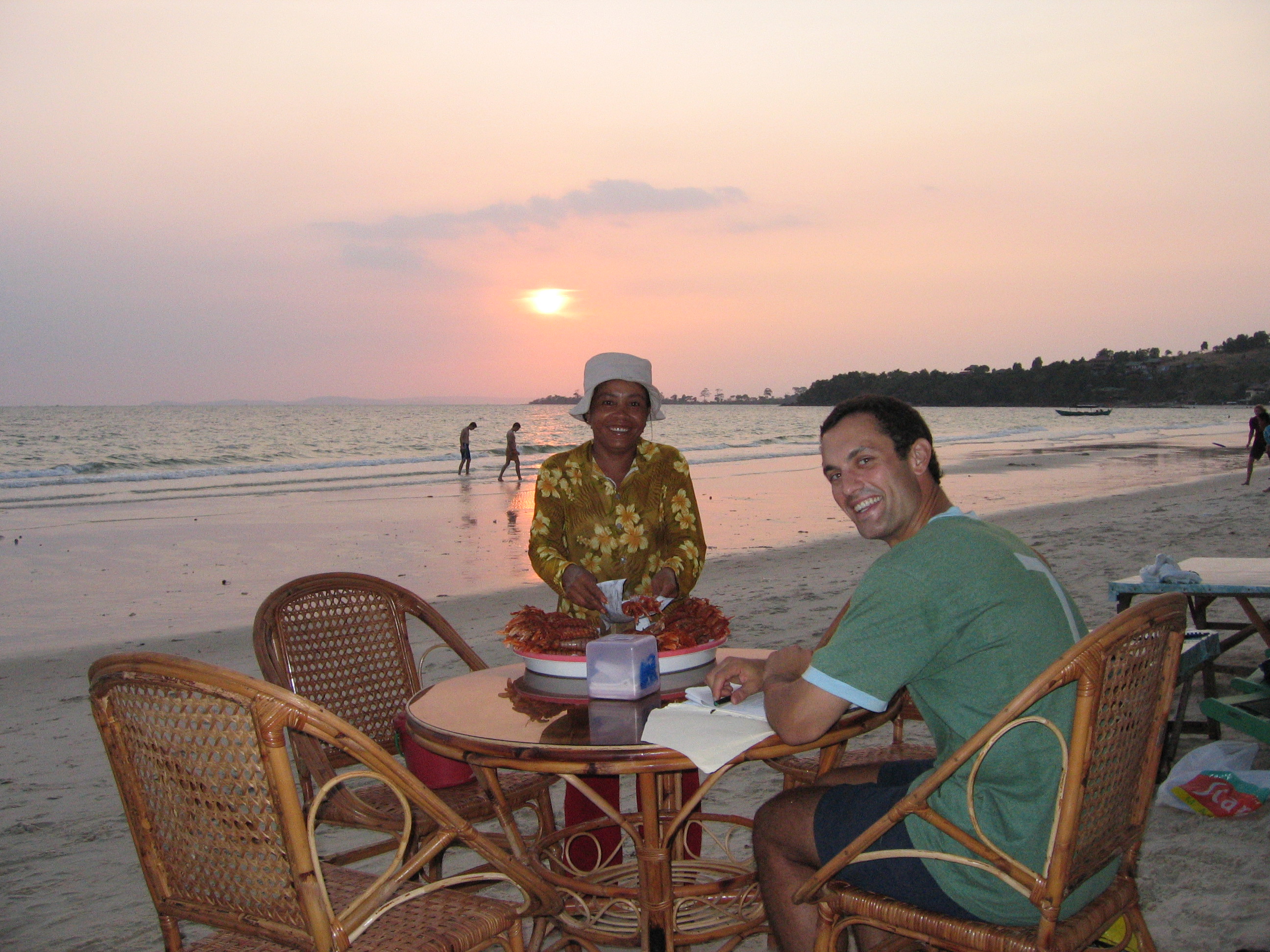 | Sihanoukville is what Ko Samui must have been like 15 years ago. The beach is lined with cute little thatched hut restaurants, there are several guesthouses in town, and the “downtown” is minuscule. The water was warm, and the beach was beautiful. |