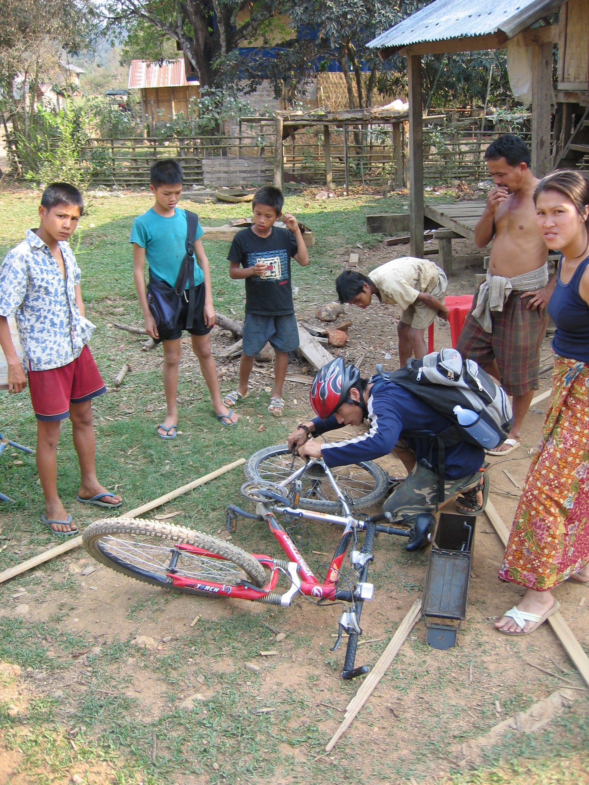 We hit a snag when a crucial metal part of Keith’s bike broke in two. The best efforts of our guide--and the entire village (see right)--could not overcome the lack a welding machine (or the proper spare part), so we had to hire a tractor to take the bike back.